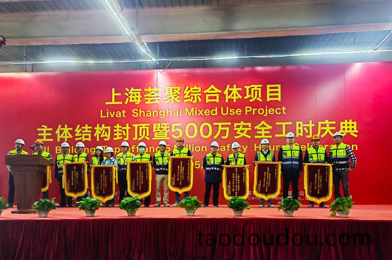 中建(jian)深裝(zhuang)幙(mu)牆(qiang)分(fen)公(gong)司(si)上海(hai)宜傢項目穫(huo)得“主體(ti)結構(gou)封頂暨500萬(wan)安全(quan)工(gong)時”慶(qing)典多(duo)項(xiang)榮譽(yu)